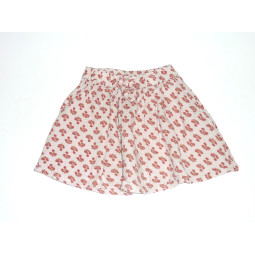 Jupe en gaze de coton de marque TAO en excellent état, imprimé couleur paprika sur fond couleur lait. Ceinture élastique. Réduction avec le code NEW pour toute première commande de 15 euros minimum. Livraison offerte en point relais dès 45 euros d'achat.
