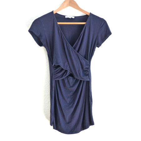 Top de grossesse et d'allaitement de la marque Envie de fraises en excellent état. Vous adorerez sa coupe qui est un des chouchous de la collection Envie de Fraise. Cache-cœur plissé qui valorise le décolleté et dessine la courbe du ventre ! Couleur marine.