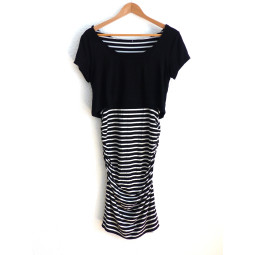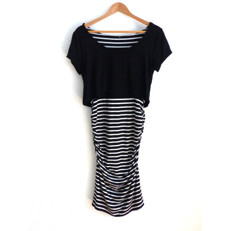 La robe de maternité est un indispensable pour se sentir à l'aise et belle enceinte. Evolutive, elle se portera tout au long de la grossesse et également après la naissance. Etat excellent.