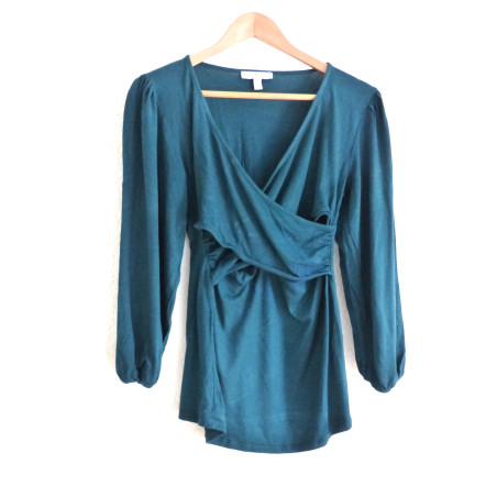Top de grossesse et d'allaitement de la marque Envie de fraises en excellent état. Vous adorerez sa coupe qui est un des chouchous de la collection Envie de Fraise. Cache-cœur plissé qui valorise le décolleté et dessine la courbe du ventre et manches bouffantes ! Couleur vert bouteille.