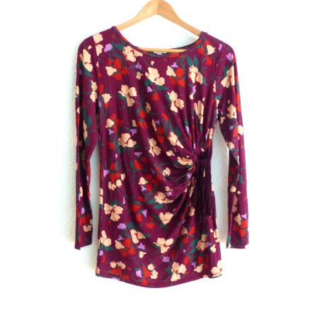 Top de grossesse de la marque Envie de fraises en excellent état. Vous adorerez sa coupe qui est un des chouchous de la collection Envie de Fraise et qui dessine la courbe du ventre ! Imprimé fleuri multicolore sur fond prune.