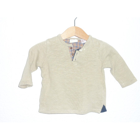 Haut couleur beige de marque Zara en excellent état, encolure à boutons et revers vichy.
