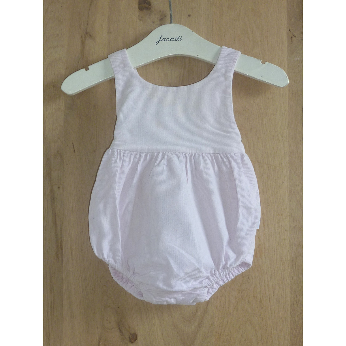 Barboteuse de marque JACADI, en parfait état, en velours finement côtelé, couleur rose pastel.