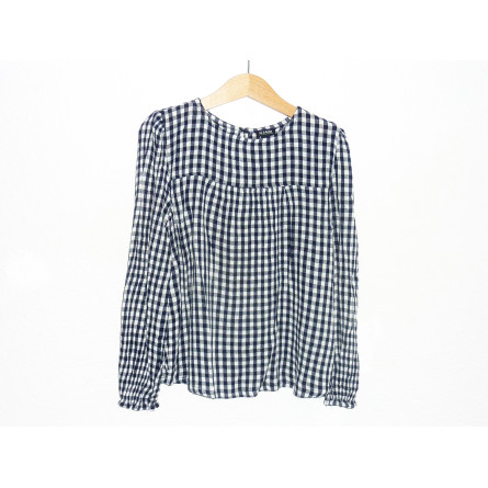 Blouse de marque Kiabi en excellent état, imprimé vichy marine et crème.