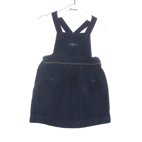 Robe de marque JACADI, état excellent, coupe salopette, couleur marine, en velours très finement côtelé.