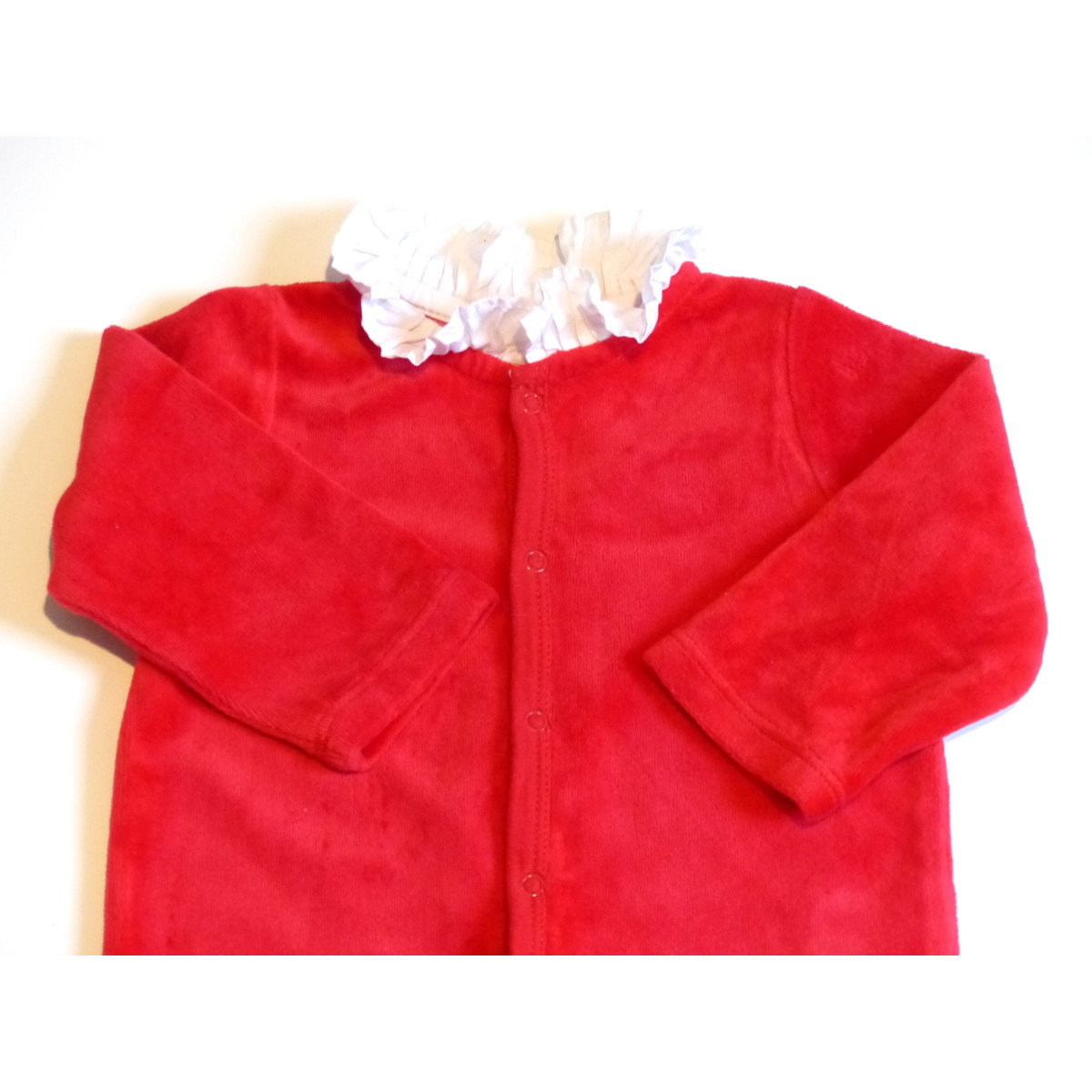 Le parfait petit pyjama pour les nuits de votre bébé. Pyjama de marque BOUTCHOU en velours tout doux, coton bio, orné d'un petit col volanté blanc. Etat excellent.