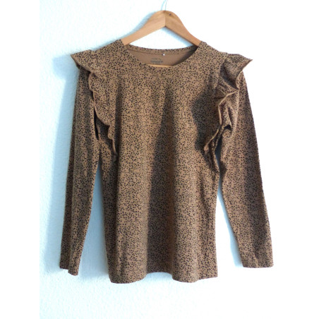 Un haut confortable qui vous accompagnera tout au long de votre grossesse. De marque PRENATAL, volanté, en coton organic. Imprimé léopard.