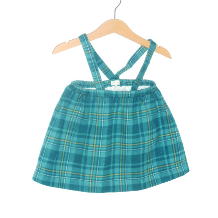 Jupe doublée de marque espagnole GOCCO, état excellent, imprimé à carreaux de couleur émeraude. Petit style vintage grâce à ses bretelles.