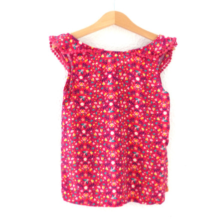 Blouse volantée de marque SERGENT MAJOR en excellent état, imprimé fleuri coloré sur fond couleur fushia.