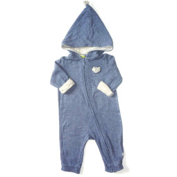 Pyjama de marque TAO, doublé, fermeture zippée devant et capuche, couleur bleu gris. En très bon état.