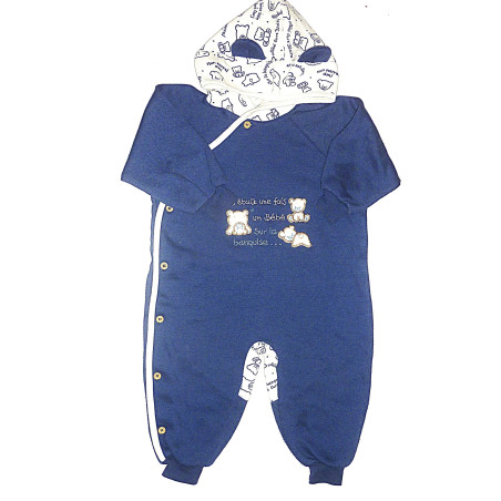 Pyjama à capuche vintage en très bon état, en coton, on craque pour son motif retro sur fond couleur bleue encre.