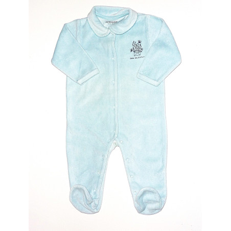 Pyjama de marque VERT BAUDET, en excellent état, en polaire tout doux, bleu pastel, orné d'un petit col pour une touche chic.