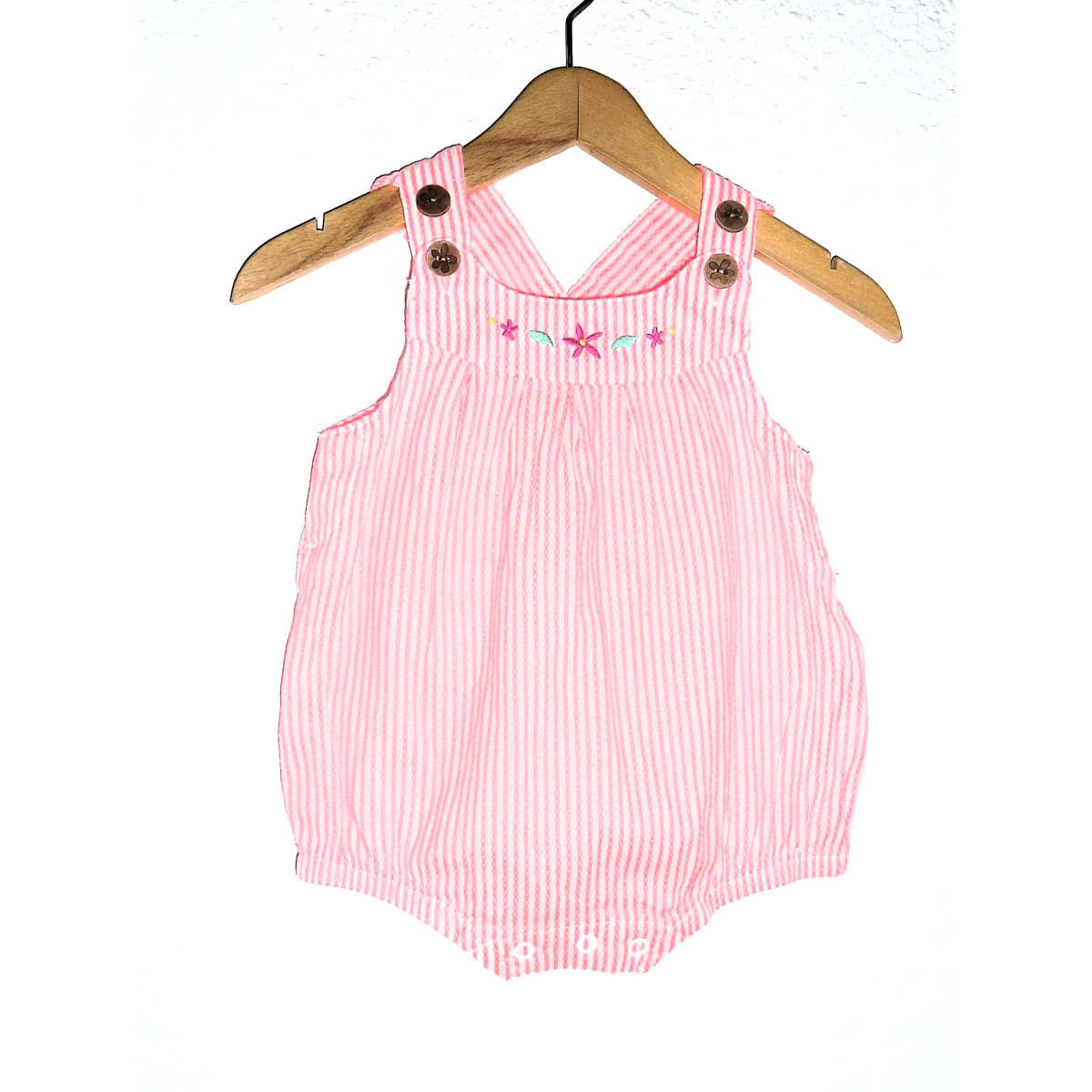 Ravissante petite barboteuse, en excellent état, de marque SERGENT MAJOR, imprimé rose fluo à rayures.