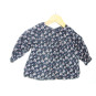 Ravissante petite blouse de marque TAO en état excellent. Imprimé fleuri rose sur fond marine, fermeture par pressions dans le dos