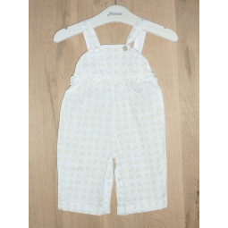 Salopette de marque JACADI en état neuf. Volantée, imprimé fleuri jaune et vert sur fond blanc.