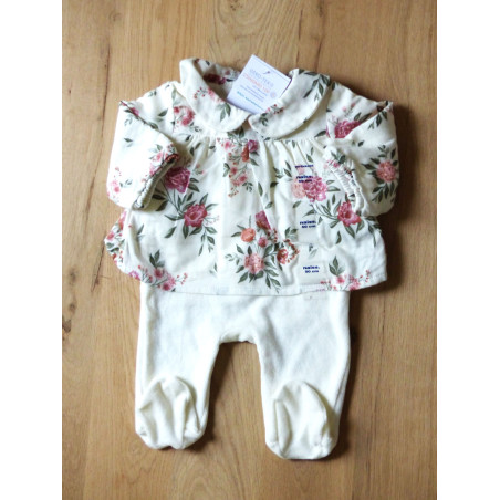 Ensemble de marque VERT BAUDET neuf avec étiquette, composé d'un pyjama tout doux couleur crème associé à la blouse imprimée fleuri vintage.