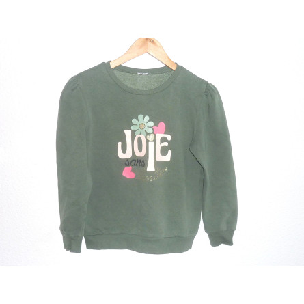 Sweat de marque TAO, doublé, couleur vert olive, orné d'une inscription positive et colorée. Excellent état