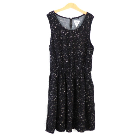 Robe IKKS, légère, imprimé beige sur fond noir. Parfait état.