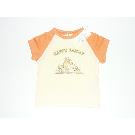 Tee shirt de marque KIABI (Oeko Tex) couleur crème, manches couleur blush orné d'un motif famille, neuf avec étiquette.