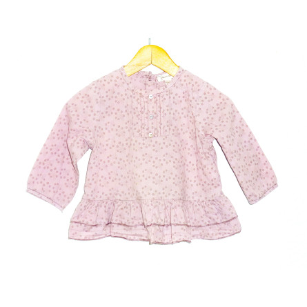Ravissante petite blouse volantée, imprimé fleuri sur fond couleur violine. Etat excellent.