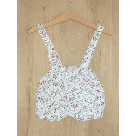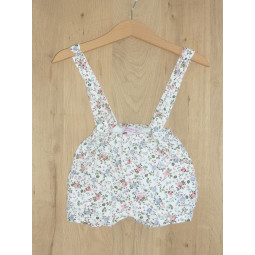 Bloomer de marque TROTTERS LONDON en état excellent, en coton, imprimé fleuri sur fond couleur crème. On craque pour son look retro chic grâce à ses bretelles.