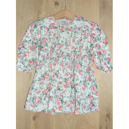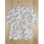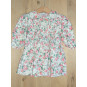 Robe vintage en excellent état, imprimé fleuri couleur menthe et rose, ornée d'une ceinture nouée et d'un joli col.