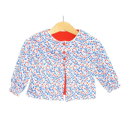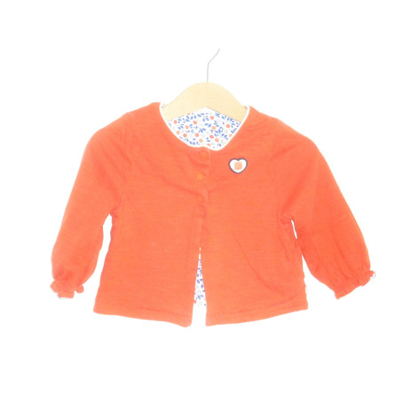Gilet réversible de marque Obaibi. En coton, un coté uni corail, un côté imprimé bleu. Etat excellent.