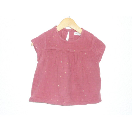 Blouse en gaze de coton, de la marque Eden et Victor, imprimé doré fleuri sur fond couleur framboise. Etat excellent