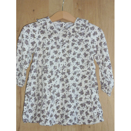 Robe de marque VERT BAUDET, en état excellent. Imprimé fleuri violet sur fond crème, ornée d'un petit col.