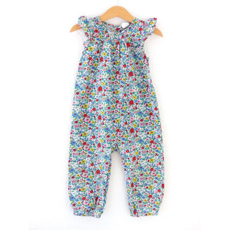 Salopette aux manches volantées, de marque GAP, en excellent état. Imprimé fleuri multicolore.