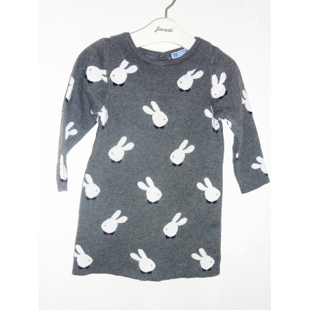 Robe pull de marque JACADI en excellent état. Imprimé blanc sur fond gris, ornée d'un col pétale.