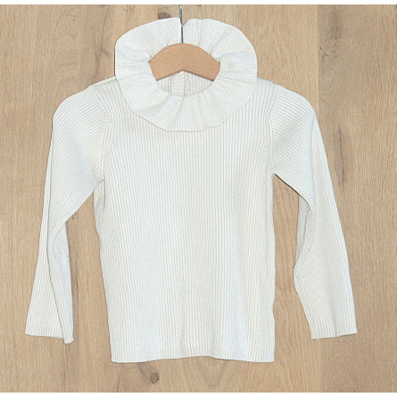 Pull en maille côtelée de marque Vert Baudet en excellent état, couleur crème, orné d'un petit col.