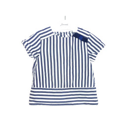 Blouse de marque JACADI en excellent état, imprimé rayé bleu et blanc. Coup de coeur pour cette blouse chic de grande marque ornée d'un noeud marine.