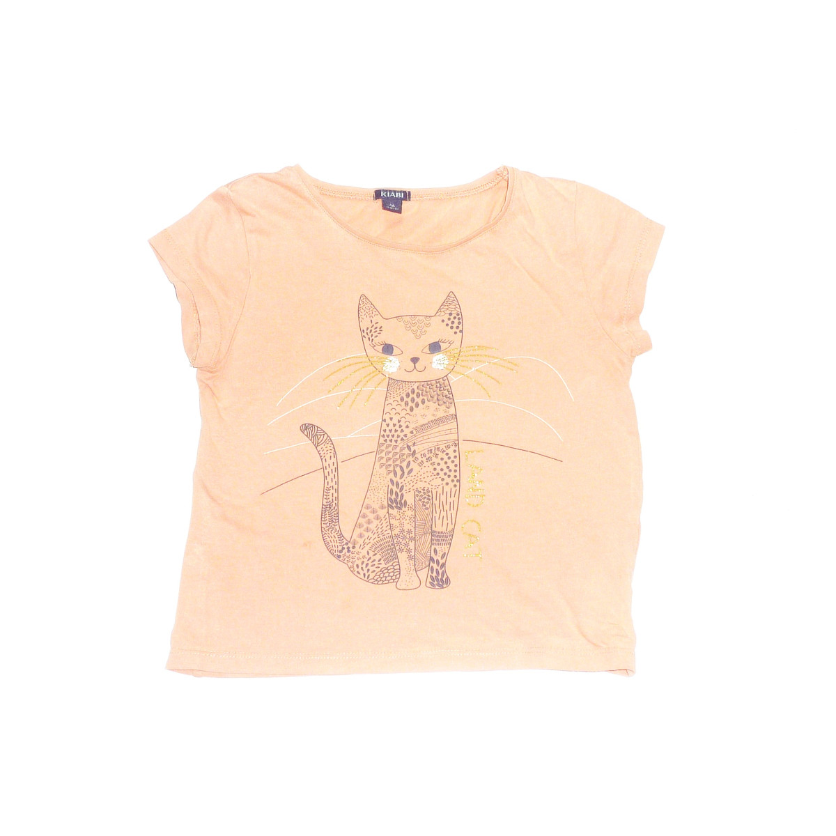 Tee shirt de marque KIABI en très bon état, couleur abricot, orné d'un motif animalier.