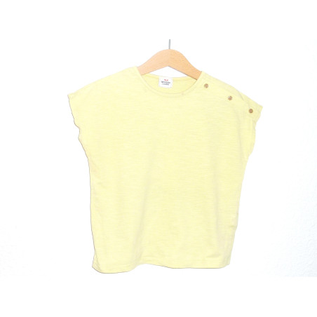 Tee shirt en très bon état, jaune pastel, orné de boutons sur l'épaule.