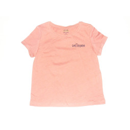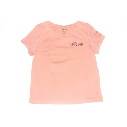 Tee shirt KIABI en très bon état, rose saumon uni, orné d'un petit motif. Un classique facile à assortir.