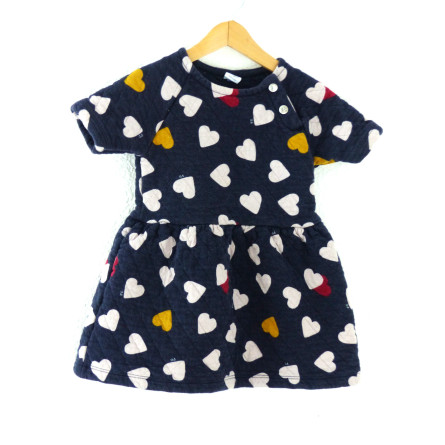 Robe de marque PETIT BATEAU en excellent état. En coton molleton, imprimé coeur sur fond marine.