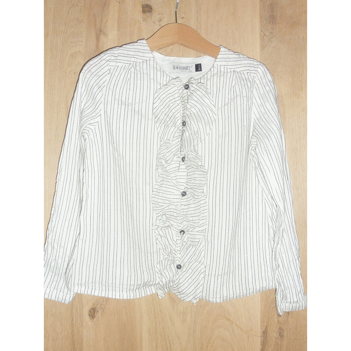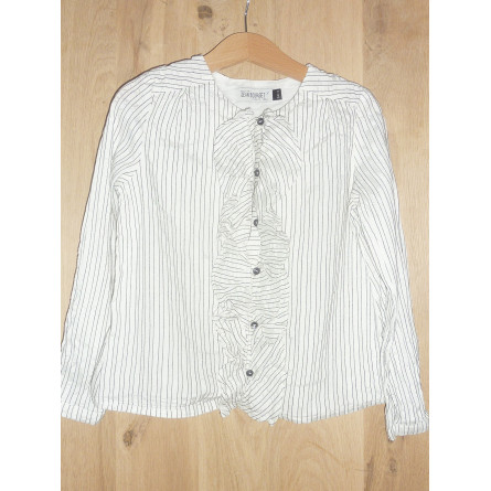 Blouse en excellent état de marque JEAN BOURGET, volantée, rayures de couleur noire sur fond crème.