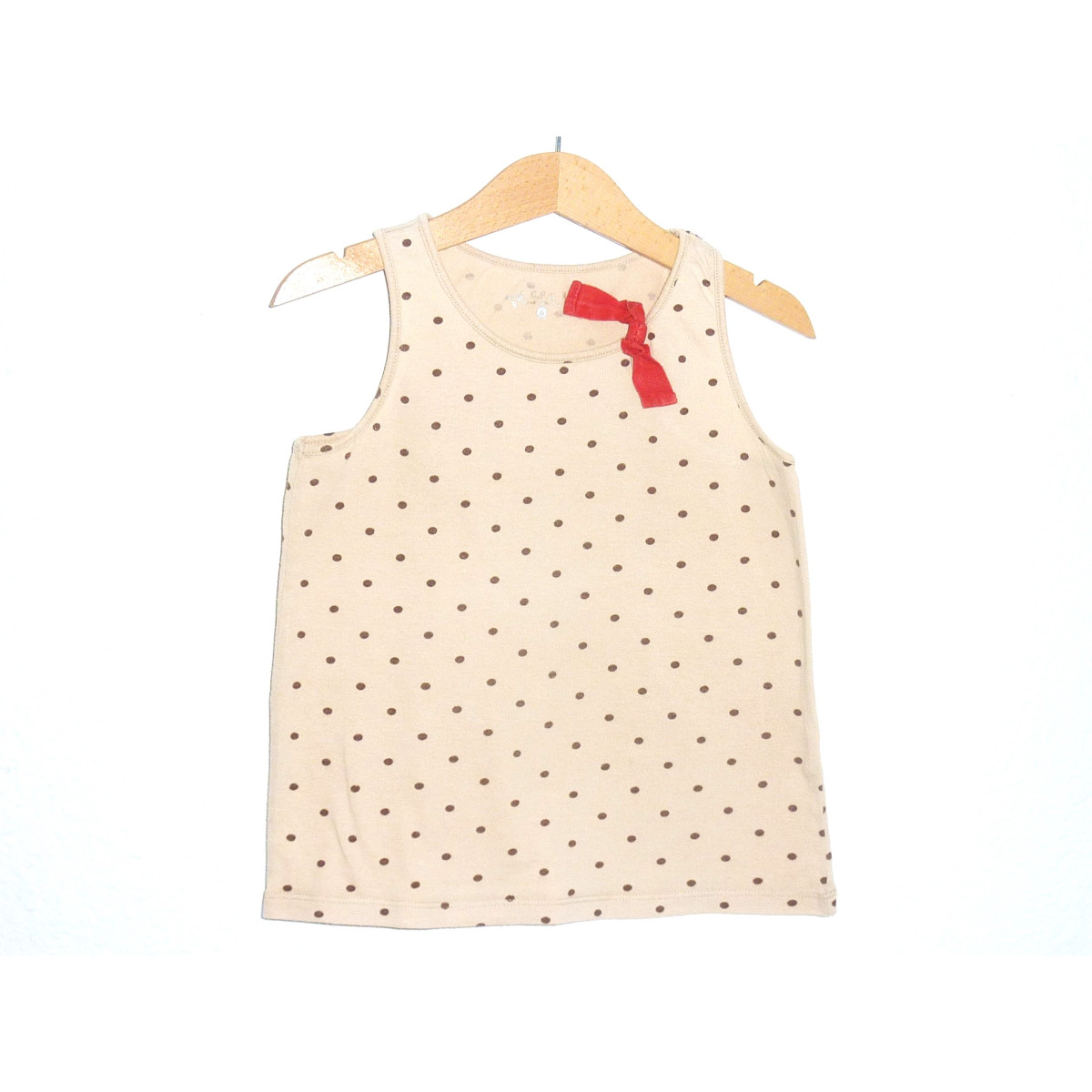 Débardeur de marque CFK, en excellent état, imprimé à pois couleur chocolat sur fond couleur beige.