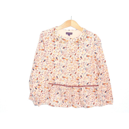 Blouse doublée de marque SERGENT MAJOR, en état excellent, imprimé coloré sur fond rose pastel, boutonnée devant.