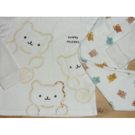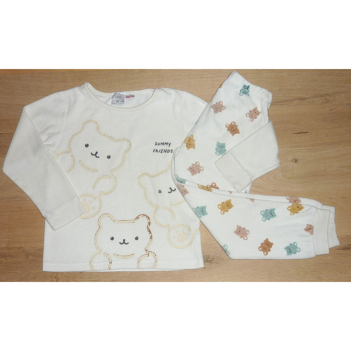 Pyjama de marque ZARA Kids en très bon état, en velours tout doux, couleur crème, orné d'un imprimé oursons.