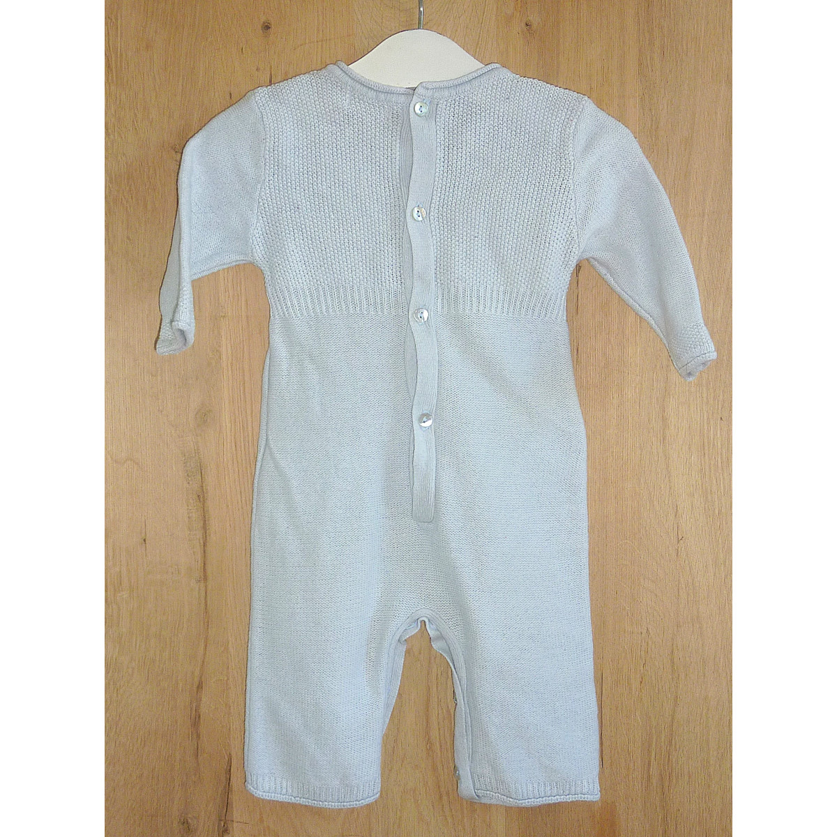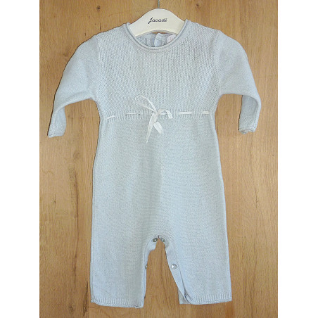 Combinaison en coton tricoté, de marque JACADI, couleur gris perle, orné d'un noeud. Excellent état