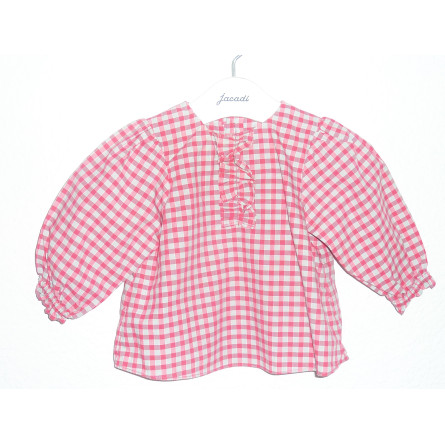 Blouse en état neuf, de marque JACADI, imprimé à carreeaux couleur rose fushia et framboise. Splendide.