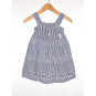 Robe de marque SERGENT MAJOR, bleue à rayures, ornée de broderies roses. Etat excellent.