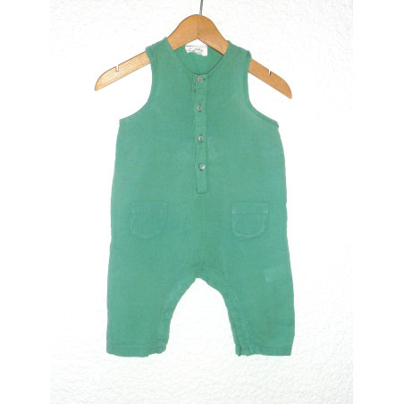 Salopette légère de marque TOCOTO VINTAGE en état excellent, verte, ornée de 2 petites poches et d'une encolure boutonnée.
