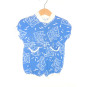 Etat excellent pour cette barboteuse vintage en coton de marque BOUTCHOU, imprimé blanc sur fond couleur bleu azur. Fermeture par pressions devant et à l'entrejambe.