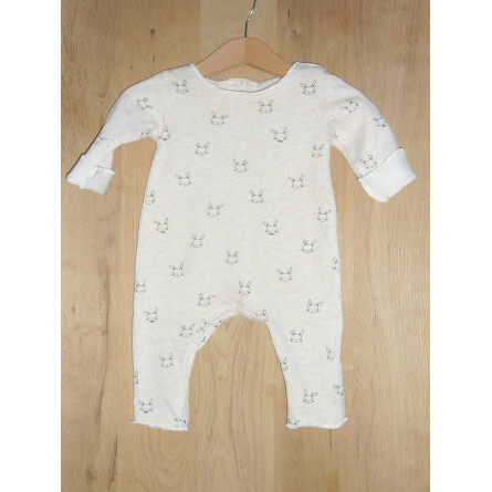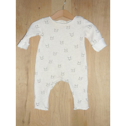 Salopette mixte de marque éthique LES PETITES CHOSES en excellent état, doublée, imprimé animalier sur fond beige chiné.
