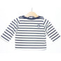 Marinière de marque PETIT BATEAU en état excellent. En coton épais. Rayures de couleur marine sur fond crème.