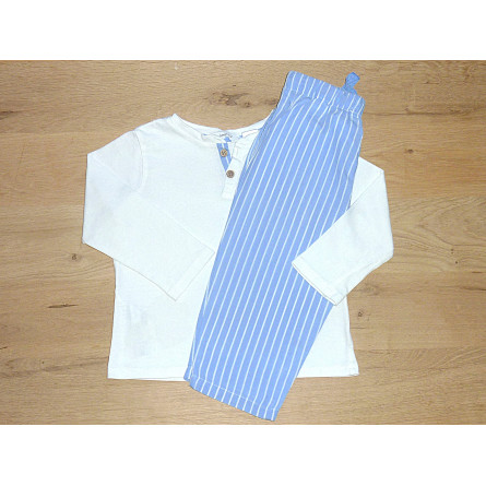 Pyjama en coton de marque MANGO en excellent état. Un petit pantalon bleu rayé associé au haut blanc assorti.