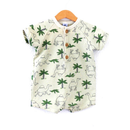 Barboteuse, de marque PETIT BATEAU. En état excellent, imprimé animalier sur fond vert.
